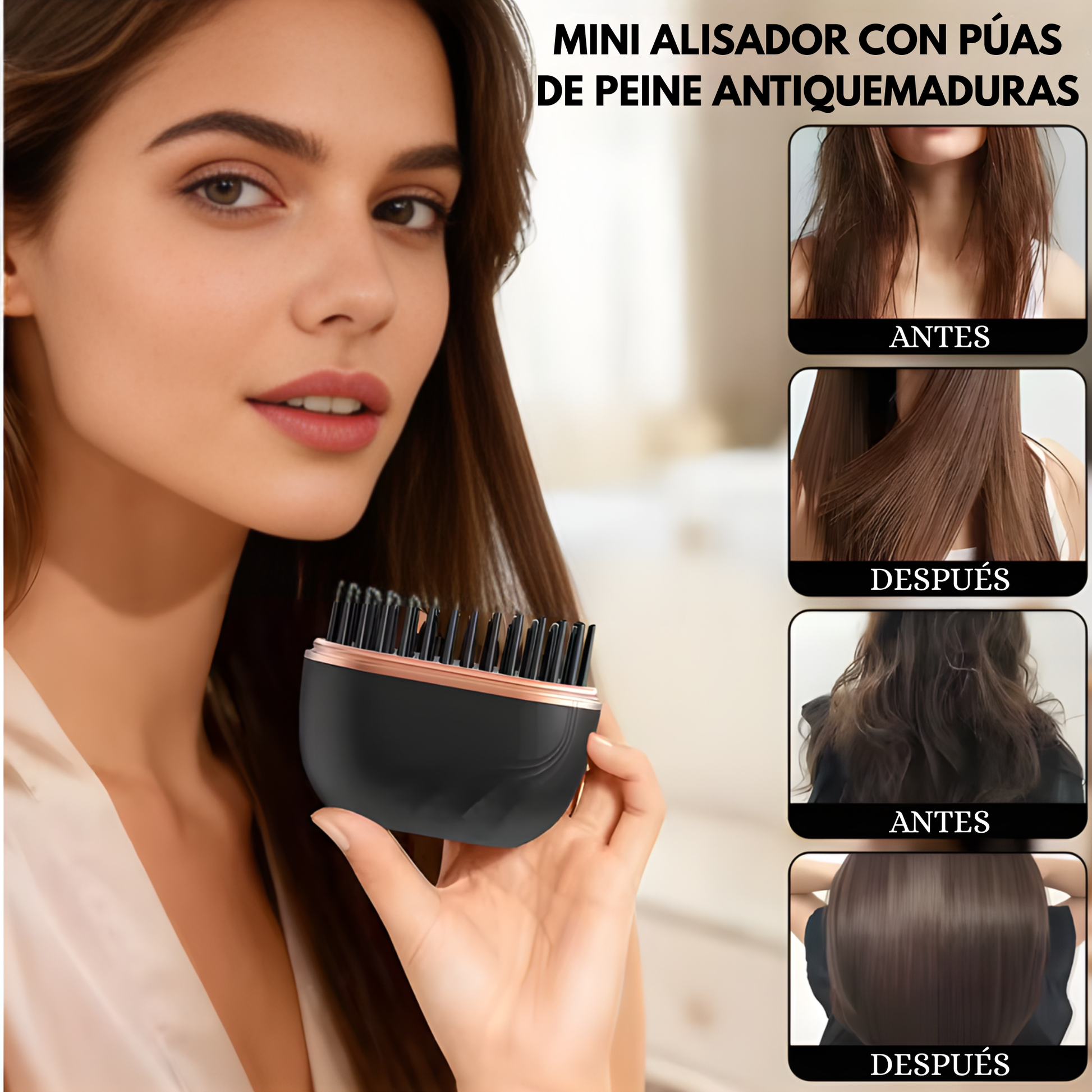 Transforma tu estilo de cabello fácilmente con nuestro cepillo alisador portátil con tecnología de iones negativos.