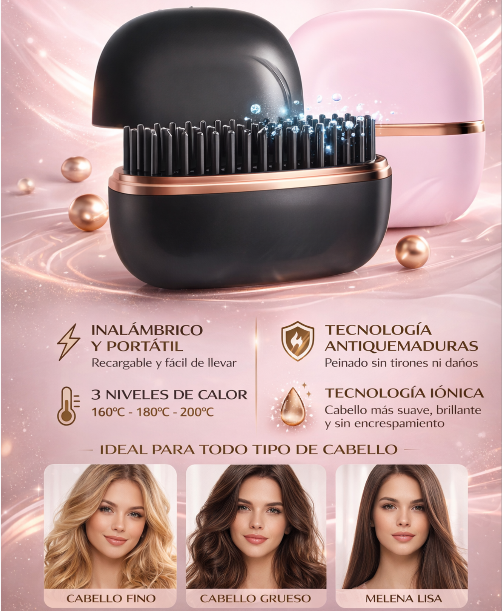 No. El cepillo está diseñado para un alisado saludable del cabello. Incorpora tecnología de iones negativos, control inteligente de temperatura y dispersión uniforme del calor, lo que ayuda a proteger la humedad natural del cabello, reducir el encrespamiento y evitar daños causados por el exceso de calor.